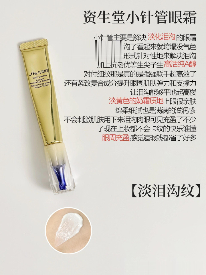 小针管的野心能更好保存活性,用量上也很好搁置,用几许挤几许,像是纹路重的可以多点涂一层,我们皮薄的亚洲肌也不必建造耐受,纯A醇眼霜果然是淡纹大佬。