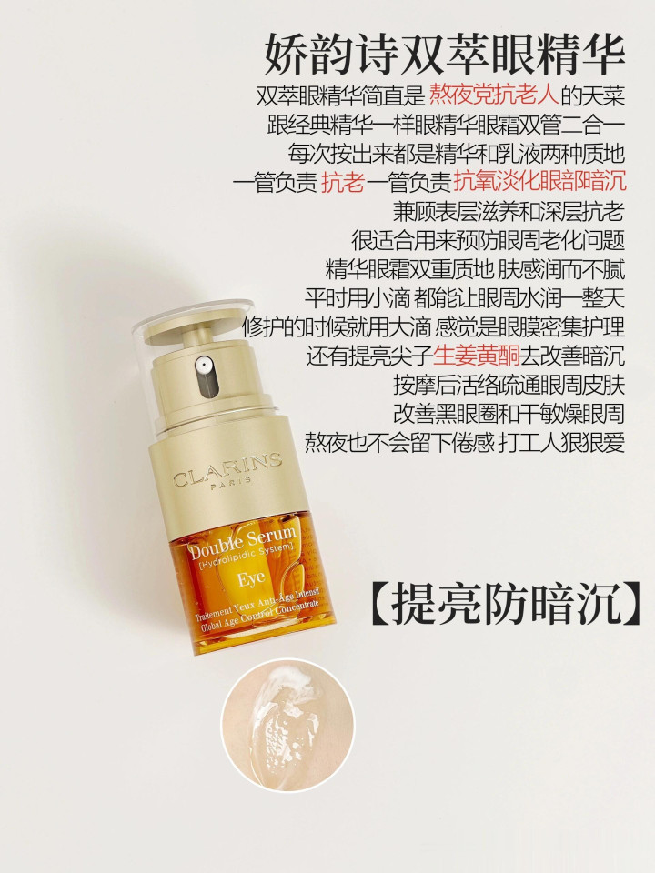 如果你也像我相通可爱拿着ipad,晚上关上灯钻进被窝里追剧的话,第二天醒来眼周皮肤很容易黑了一度,这时候这款眼霜就能帮到你了,很是超过的眼精华眼霜二合一。