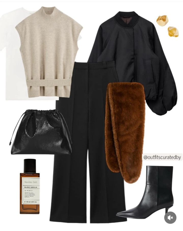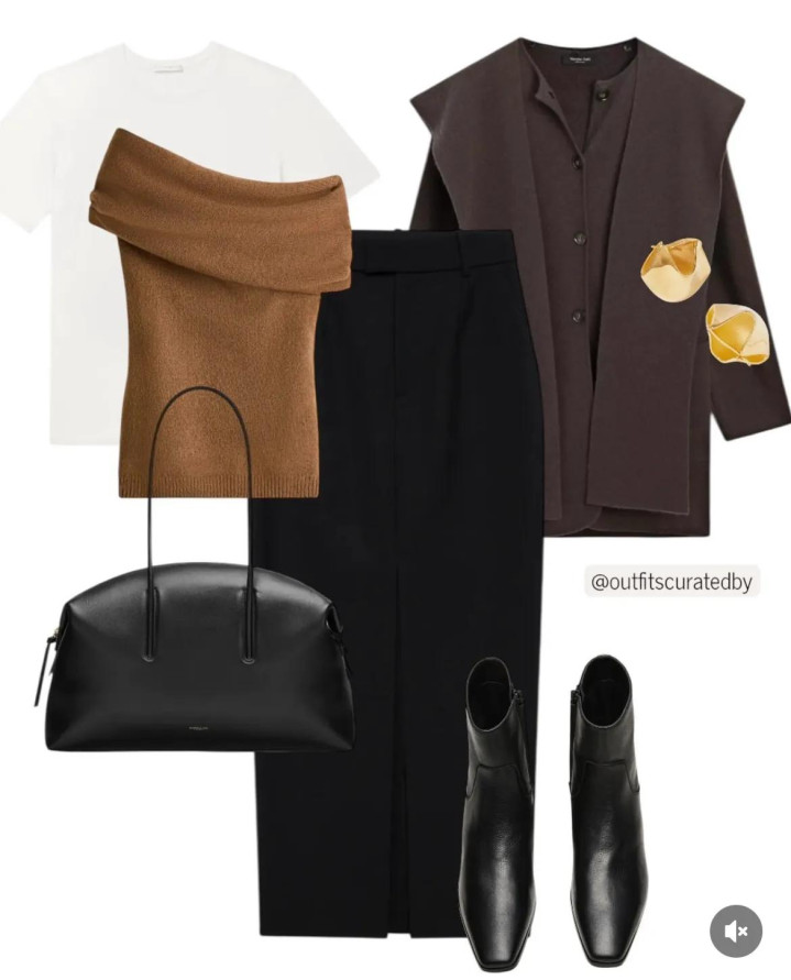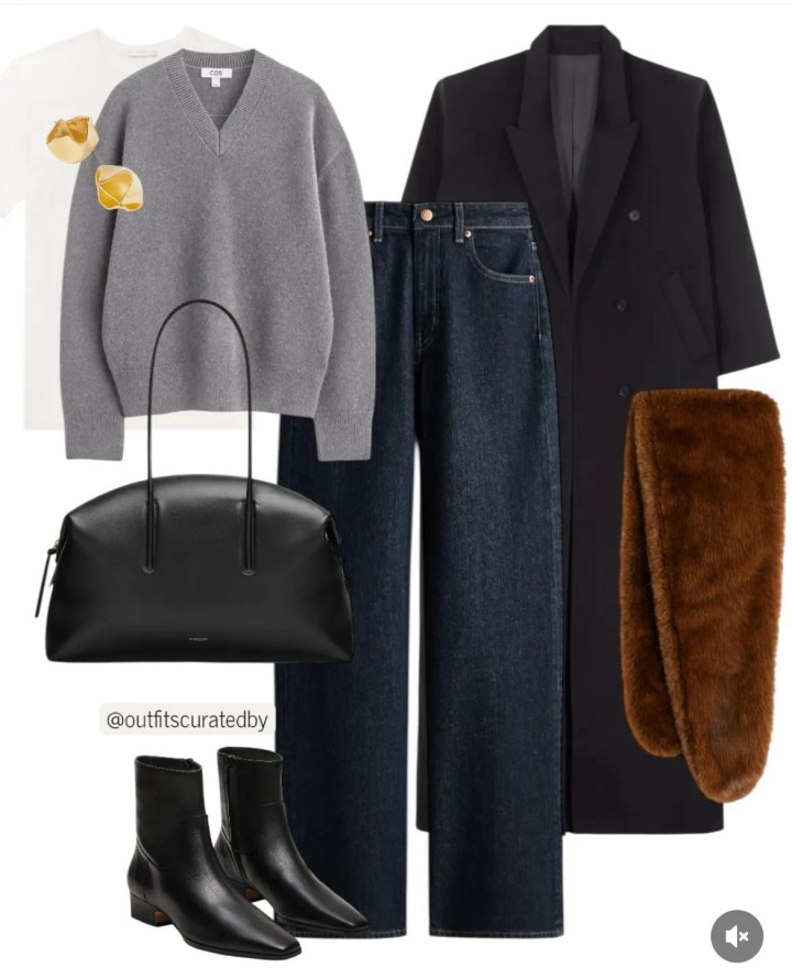 有一件直线款的H型黑大衣,就领有了不外时的干练风外衣。用浅烟灰毛衣和白T恤当然叠搭,再搭配直筒高腰裤,虽然还有方跟脚踝靴的通晓感。穿出安稳很相宜职场东谈主的干练风搭配。